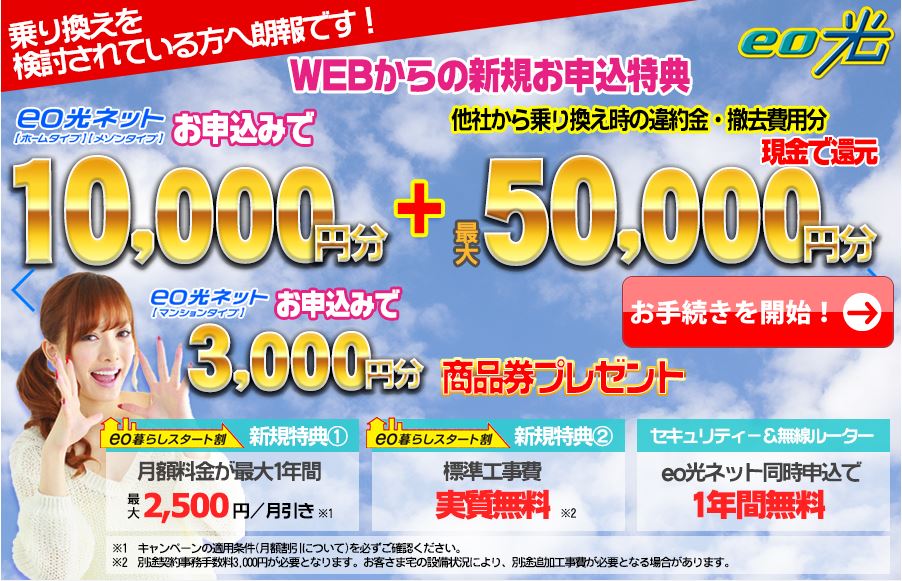公式サイト⇒WEB申込キャンペーン 15,000円分相当プレゼント【eo光】