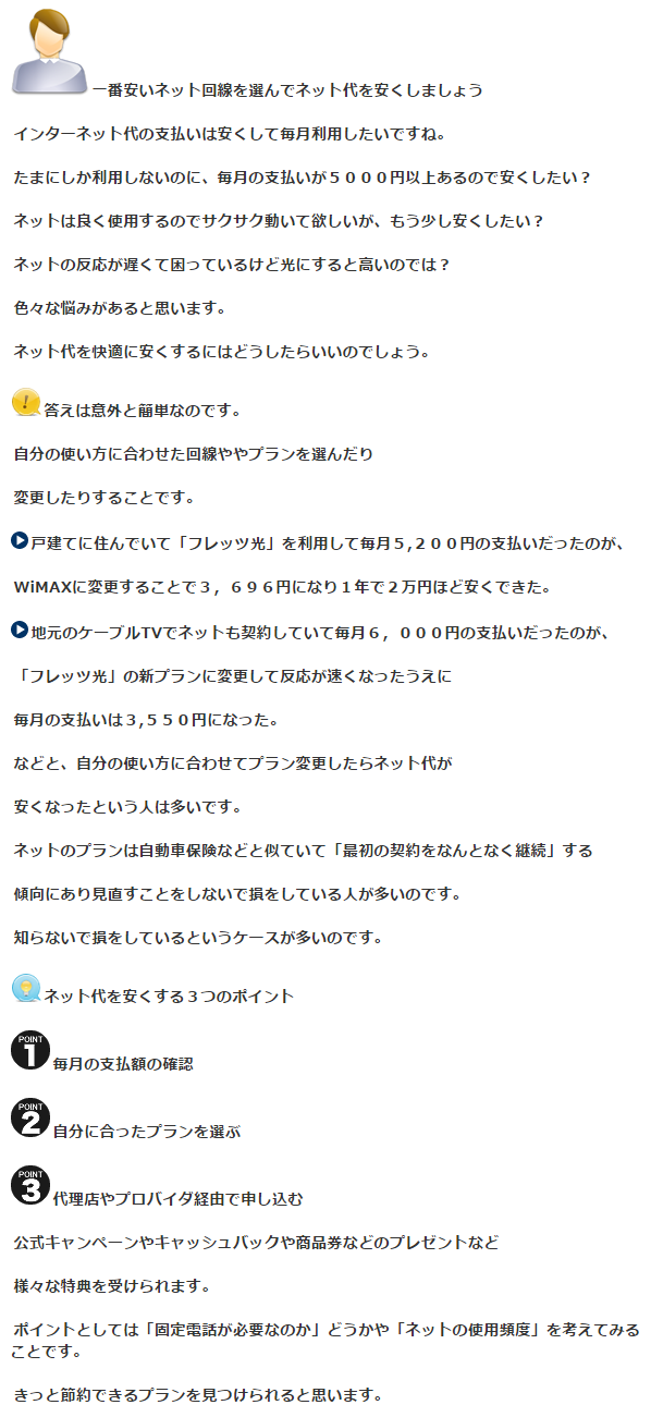 余計なオプションは一切不要!インターネットをおトクに始めよう。