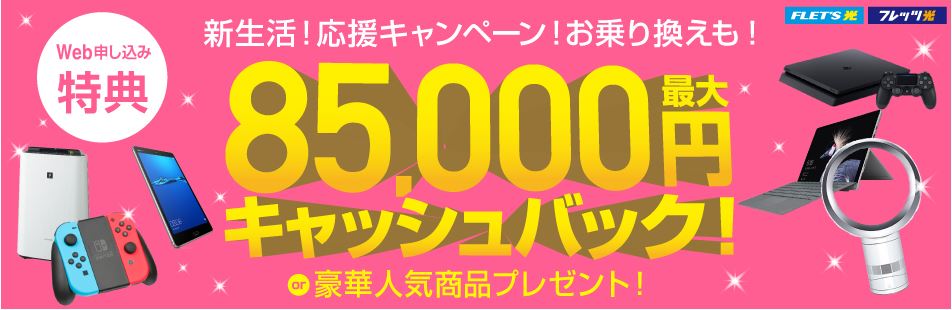 知名度の高いフレッツ光に70,000円と高額キャッシュバックや